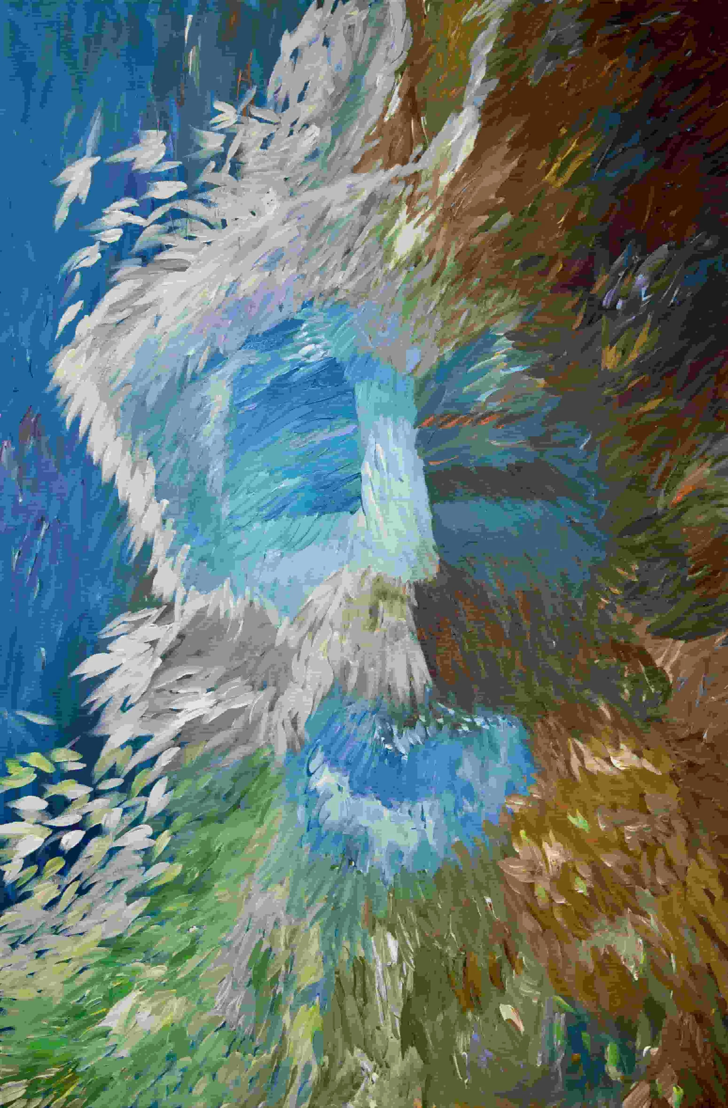 My work emerges from an improvisational way of seeing. I rarely approach the canvas with a plan or predetermined imagery. I love beginning with a blank mind, examining the colors in my basket that speak to me that day. Being a musician, I almost always paint to music. Whether it’s Bill Evans, Hermanos Gutierrez, or Nine Inch Nails, there is a sonic inspiration that mirrors my mood and shapes my creative process.